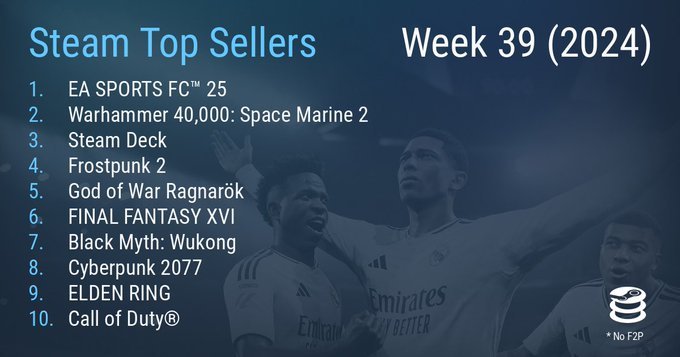 体育竞技游戏作为众多游戏中的一个大类,有着相当强的玩家黏性。因为体育竞技游戏是少有的,从游戏玩法到游戏角色,都能形成属于自己的忠实拥趸的游戏作品。在最新一期的Steam周销榜上,足球类的《EA Sports FC 25》就冲上了第一位。