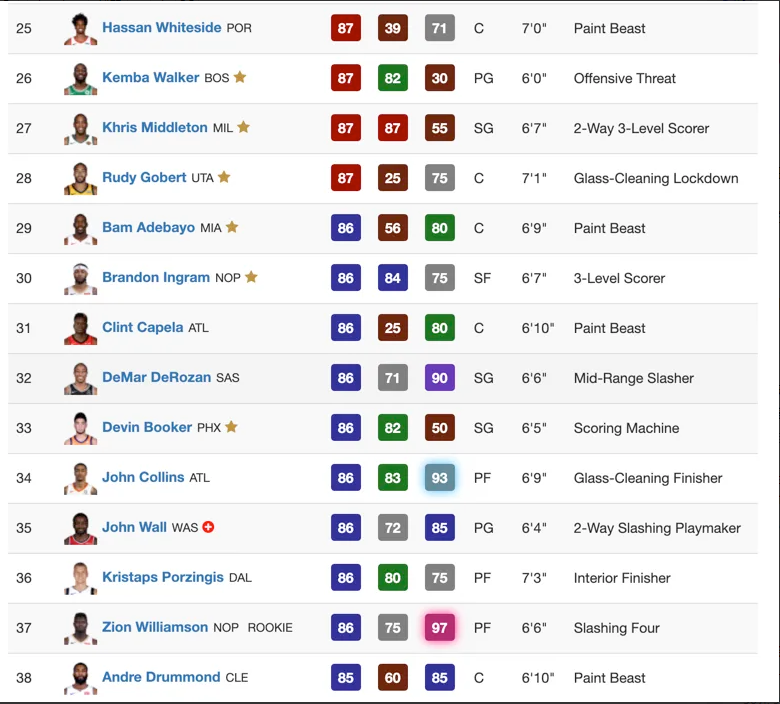 到《NBA2K19》推出的时候,哈桑-怀特塞德的能力值提升到了87,高居联盟第25位。作为一个二轮秀,他的故事已足够励志。