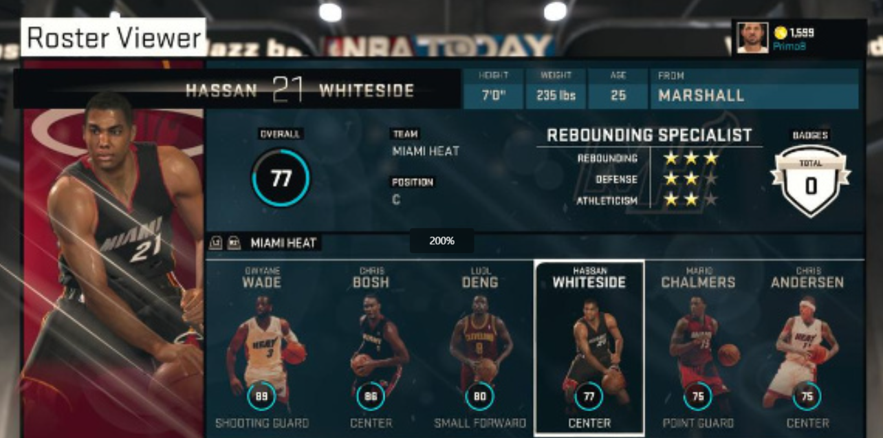 在2015年推出的《NBA2K16》中,NBA2K官方就曾将彼时担任热火队中锋的哈桑-怀特塞德的能力值,从59调到了77。理由正是因为在热火96-84战胜公牛的比赛中,他砍下了14分,13篮板,12盖帽的豪华三双数据。