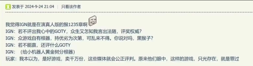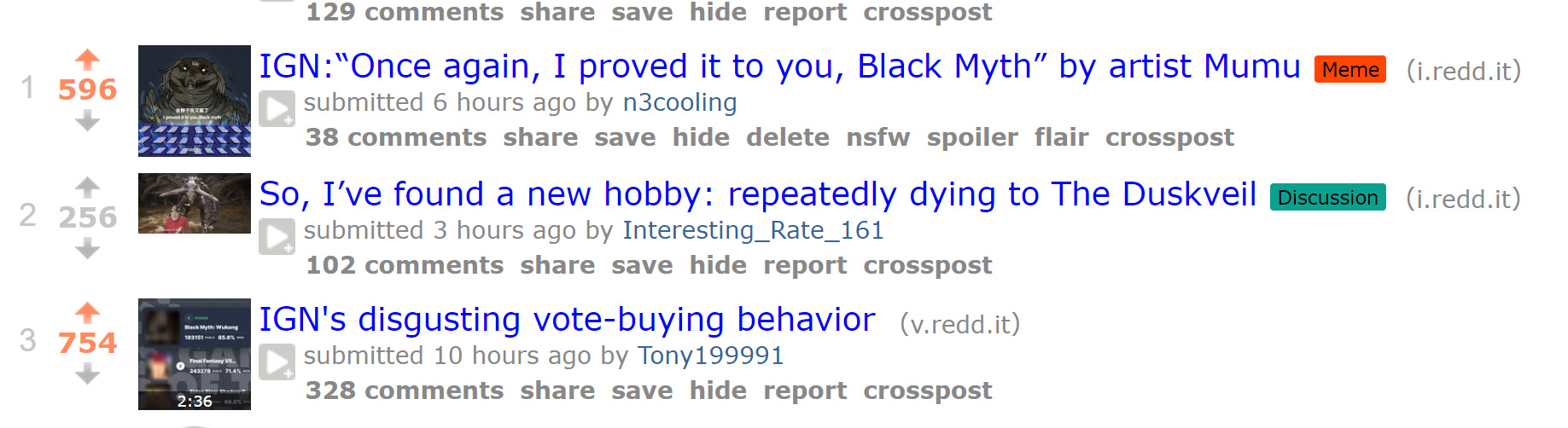 当前在外网贴吧Reddit论坛,关于《黑神话:悟空》在投票数据上遭遇了暗箱操作的帖子始终高居前几位。更加具有黑色幽默意味的点在于,游戏剧情中的故事似乎已经在现实中上演了!