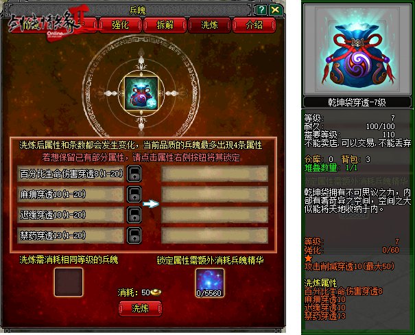 兵魄系统新增洗炼玩法,兵魄等级≥7级且品质为紫色、金色、橙色的兵魄均能进行洗炼。大侠又可以提升自己的兵魄装备属性了,究竟怎么玩?先来了解一下吧!