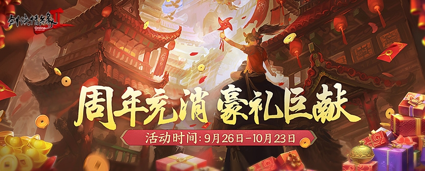 周年派对将开启三节连过、周年庆典等十四大福利活动,一起欢度周年庆、国庆、重阳节三大时刻,狂欢一整月!