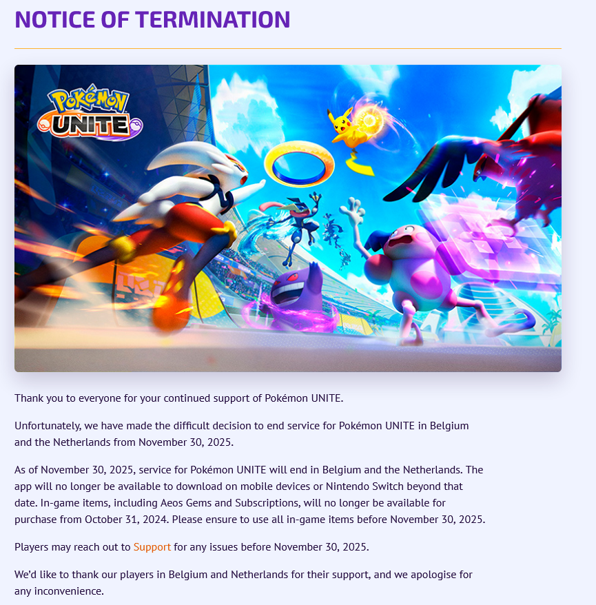公司写道:“我们要感谢比利时和荷兰玩家的支持,对于给各位带来的任何不便,我们深表歉意。”