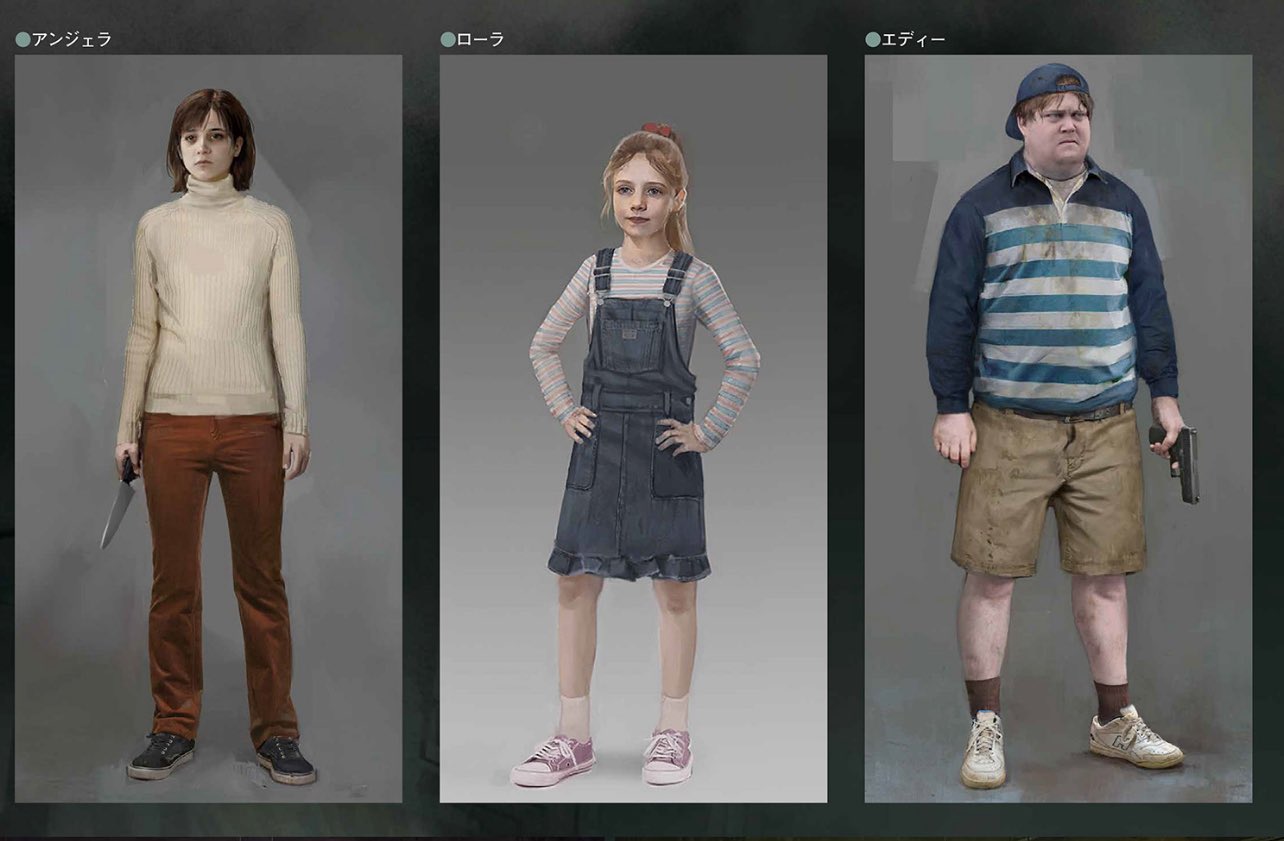 推主@BadHumans分享了日本游戏杂志Famitsu曝光的《寂静岭2:重制版》角色概念图。很多网友更喜欢这些概念图中的男主James和女角色安吉拉,而不是《寂静岭2:重制版》最终确定的3D角色。