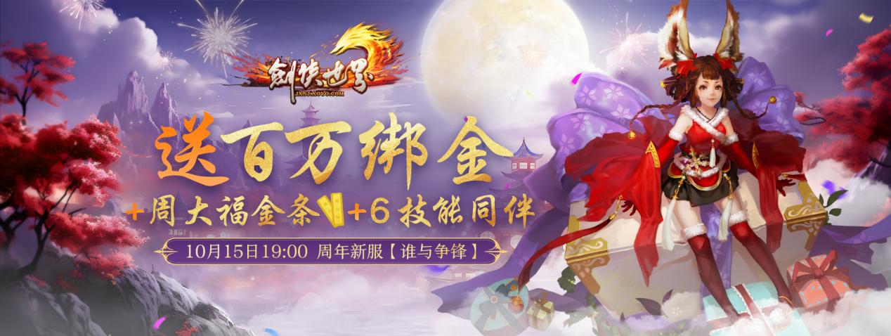 《剑侠世界端游》周年资料片“武林至尊”将于10月15日正式上线!周年新服【谁与争锋】同步将于10月15日19:00开启!领百万绑金开局,0.002折等诸多超值礼包,惊喜好礼尽在周年新服预约专题!