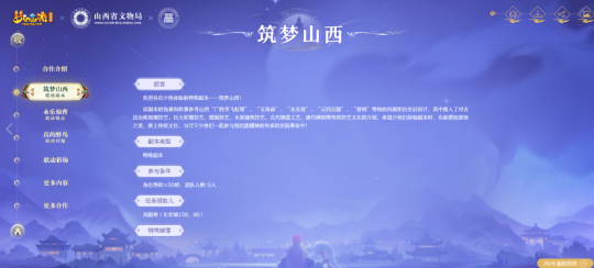 ¡¡¡¡ÓÐ×Å¡°Öйú¹Å´úÎÄ»¯²©Îï¹Ý¡±Ö®³ÆµÄɽÎ÷£¬ÓµÓÐÐí¶àÖлªÓÅÐ㴫ͳÎÄ»¯´ú±íÐÔµÄÀúÊ·ÎÄÎï¡£ÔçÔÚ2023ÄêÊý×ÖÎIJ©·¢Õ¹ÂÛ̳ÉÏ£¬É½Î÷Ê¡ÎÄÎï¾Ö¾ÍÓëÍøÒ×ÓÎÏ·´ï³ÉÁ˺Ï×÷¡£2024Äê3Ô¿ªÊ¼£¬¡¶ÃλÃÎ÷ÓΡ·µçÄÔ°æÓëɽÎ÷Æß´óÎIJ©µ¥Î»µÄÉî¶ÈºÏ×÷£¬ÍƳöÁË¡°ÖþÃÎɽÎ÷¡±Áª¶¯»î¶¯¡£