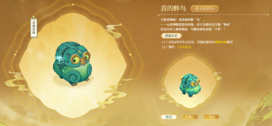 ¡¡¡¡ÔÚ¡°ÖþÃÎɽÎ÷¡±Áª¶¯ÖУ¬¡¶ÃλÃÎ÷ÓΡ·µçÄÔ°æÒÔɽÎ÷²©ÎïÔº¹Ý²ØÎÄÎï¡°û^ØÕ¡±ÎªÔÐÍ´òÔìÁËÁª¶¯ÏéÈð¡°ÕæµÄ×íÄñ¡±£¬²¢ÎªÆä´òÔìÁËרÊô²Êµ°¡£¡°ÕæµÄ×íÄñ¡±Êǹú±¦£¬Òò´ËËü³ÉÁËÃλÃÎ÷ÓεÚÒ»Ö»¡°ºáÐС±ÏéÈð£¬ÒòÆäÊÇÉÌ´úÇàÍ¾ÆÆ÷£¬µ±¶àÖ»¡°ÕæµÄ×íÄñ¡±ÔÚ×é¶Ó״̬Ͻӽü£¬¾ÍÄÜ´¥·¢ÌØÐ§¡°¸É±¡±£¡