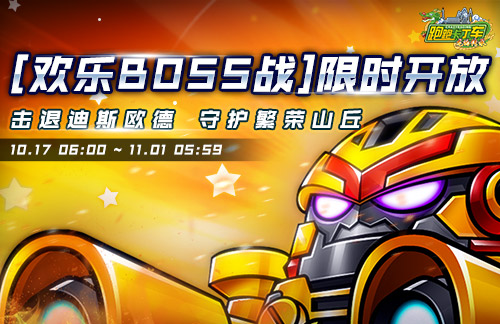 金秋时节,<欢乐BOSS战>、<繁荣山丘的神秘礼物>限时开放!即刻登录《跑跑卡丁车》,与迪斯欧德一较高下吧!