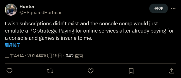 另一位网友表示:“我希望订阅服务本身就不存在,在已经买了游戏主机和游戏之后还要再花钱买联网功能对我来说不可理喻。”