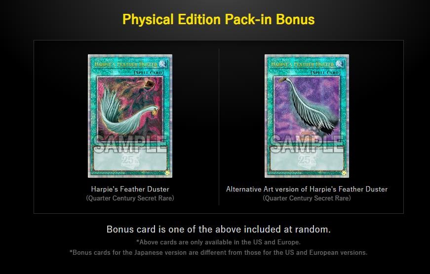 科乐美宣布《游戏王:早期合集》将于2025年2月27日发售,登陆Steam和Switch,其中Switch将提供实体版,并附带特典《游戏王OCG》卡牌“鹰身女妖的羽毛扫(QCSER)”(两种版本随机发放)。