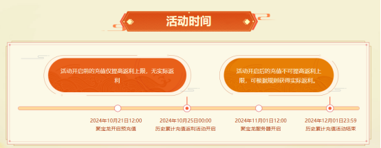 想要知道自己的返利上限和额度,可以前往官网“聚宝龙”服务器活动页面找到返利大服特色活动,进行历史充值相关信息查询。好不容易赶上这么好的福利活动,还不快去查询一下自己能获得多少返利吗?