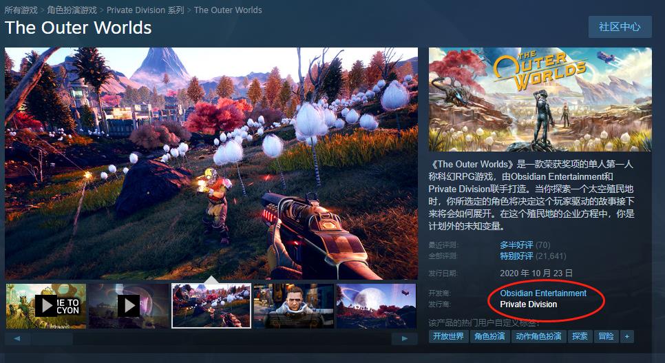 Private Division是Take-Two于2017年宣布成立的发行公司,专注发行于小型独立团队的游戏,比较有代表性的作品是发行了由黑曜石开发的《天外世界》。