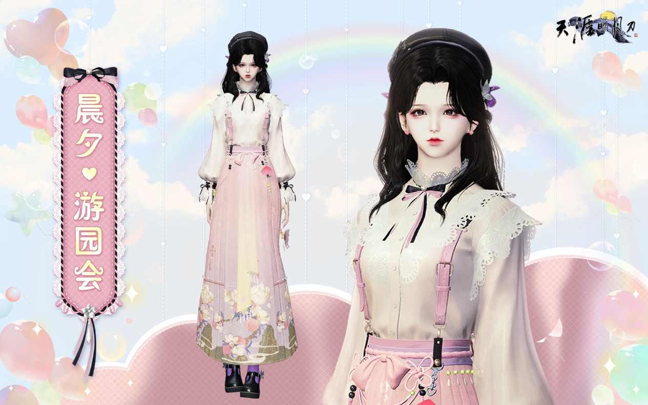桃粉色的马面裙,不仅蕴含着外婆的无私的爱更是刀刀对新中式美学最温柔的向往。收藏套装即可解锁面饰【听情·游园会】,戴上面饰畅玩游园会吧!