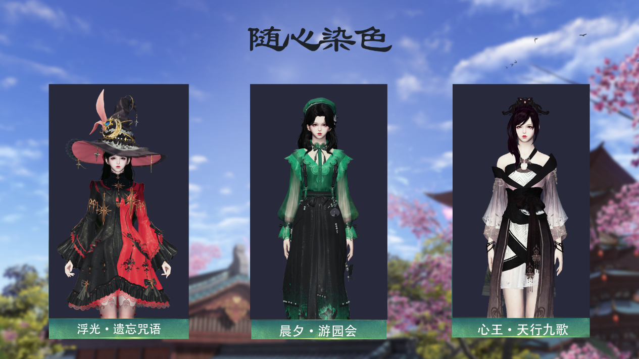 【浮光·遗忘咒语】、【晨夕·游园会】、【心王·天行九歌】,开放随心染色功能。