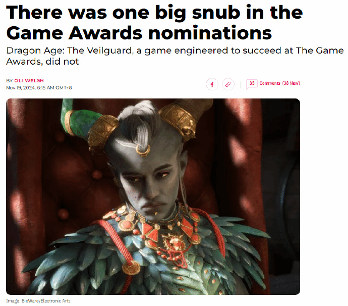 即便是TGA,在为各大奖项进行提名时,也非常克制了。《龙腾世纪4影障守护者》目前仅获得了无障碍创新这一项提名。更有外媒表示:“《龙腾世界4》看起来像是一款为奖项而设计的游戏,但它最终未能实现这一目标。”