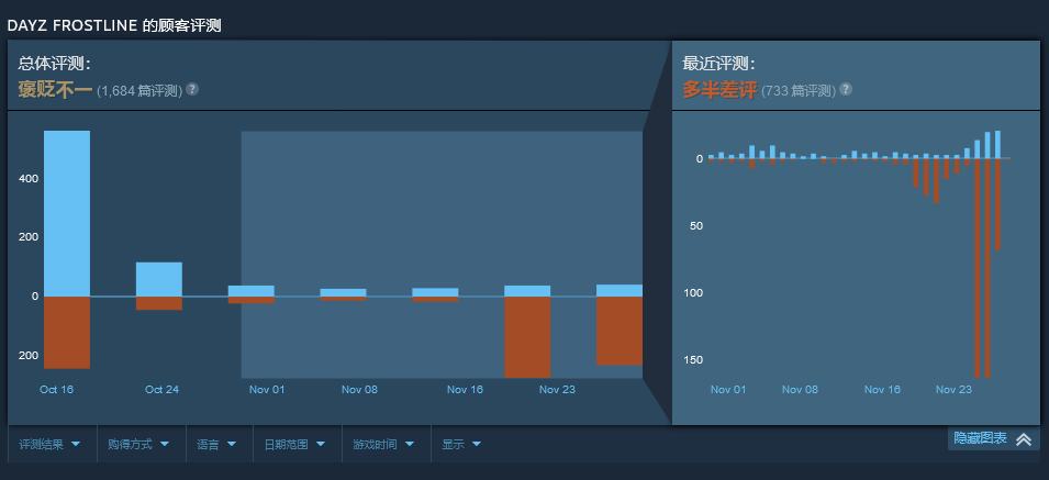 热门射击生存游戏《DayZ》最近于 10 月推出了名为“Frostline”的 DLC,然而由于定价原因,它获得了玩家的大量差评。
