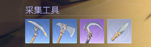 言归正传,这个游戏前期提供了四种采集工具,分别对应不同的采集技艺。