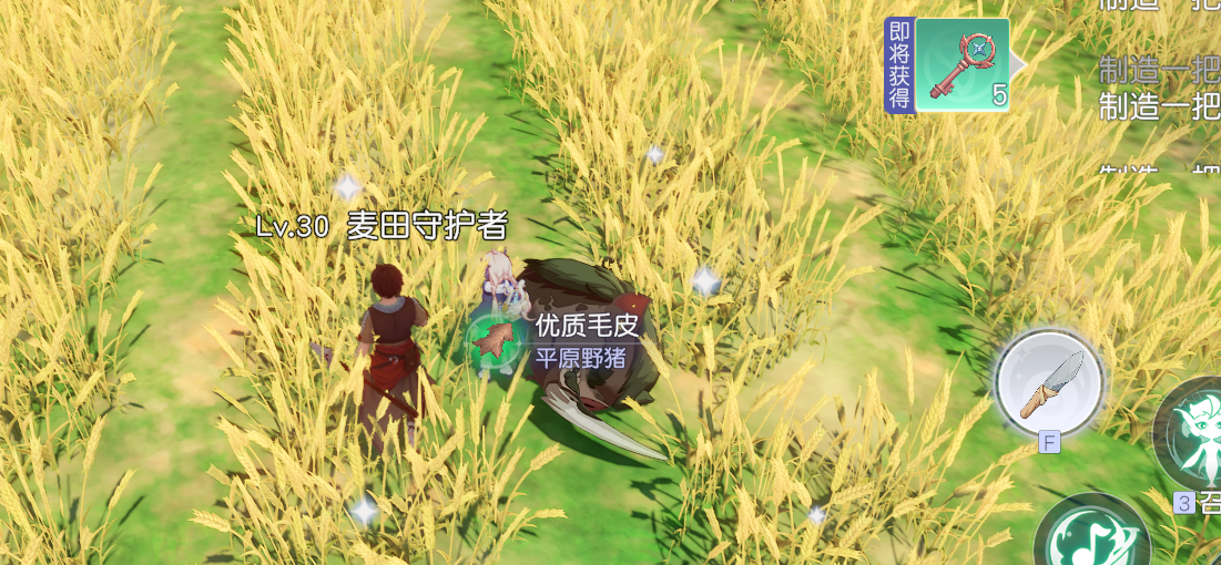 含泪收下npc送来的大野猪一只,并获得了它身上的优质毛皮!
