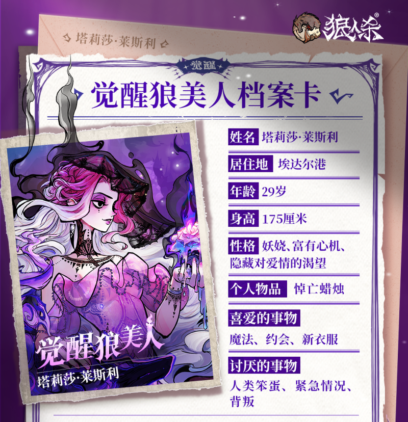觉醒狼美人是跟随“暗夜星辰”板子上线的。狼人阵营的策略、团队协作、沟通技巧都能在这个板子里展现的淋漓尽致。