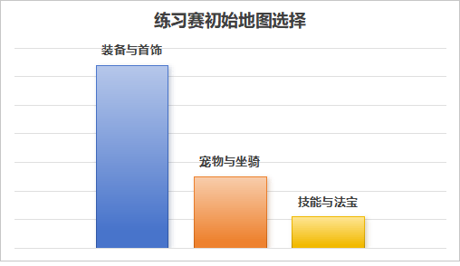 在过去七天的练习赛中,有超过60%的玩家选择了装备和首饰出现几率增加的地图作为起点,25%的玩家选择了宠物和坐骑增加的地图,而只有少部分玩家选择了技能和法宝出现几率增加的地图。