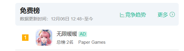 叠纸新推出的开放世界换装游戏《无限暖暖》,已于12月5日正式上线。作为一种极具实验性的游戏类型,《无限暖暖》取得了相当高的玩家关注度。上线仅一天,便在手游免费榜上空降到了第一名。