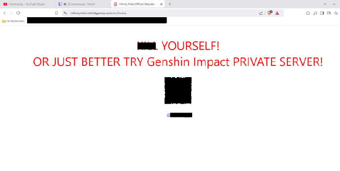 从昨日开始,北美和日本服务器就短暂地陷入过一场混乱当中。当地的服务器停摆了1个多小时,期间玩家只要点击《无限暖暖》的下载页面,就会弹出一个异常页面。这个页面上除了出现对玩家的侮辱性言论,还贴出了一张《原神》私服的二维码。