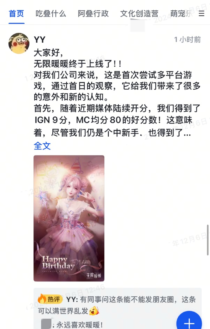 兵贵神速,公测当天《无限暖暖》官方已经对服务器进行了更新,并对服务器连接、特效异常、CPU发热等问题进行了排查和修复,游戏内容得到了进一步优化。而根据叠纸创始人姚润昊在内部群发布的消息,本作的首发市场表现还是相当不错的。