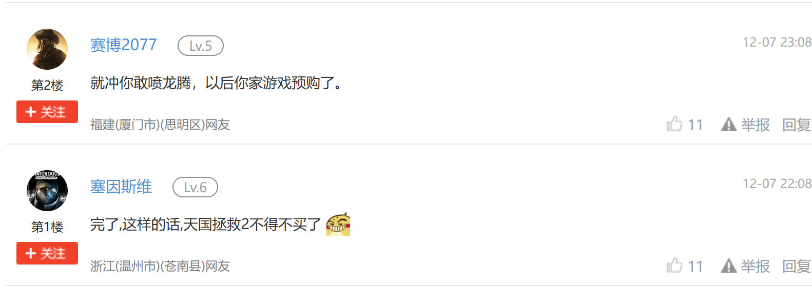 国外网友和我们3DM的网友一样,就冲你敢嘲讽正确游戏,我刚买了《天国:拯救2》,同时称赞《天国:拯救2》是一个注重真实、玩法和故事的游戏,而不应该被ZZZQ或诱惑玩家花钱的即使服务模式所拖累。