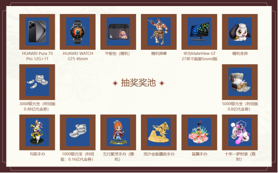 同时为了回馈广大道友的热情参赛,在12月19日也将开启全民参与奖励抽奖活动,所有报名全民乱斗并参与正赛战斗的选手都可以参与抽奖。奖品包括各色官方手办,海量银元宝,随机变异/神兽,以及包括华为P70 PRO在内的多种数码豪礼,千万不要忘记!