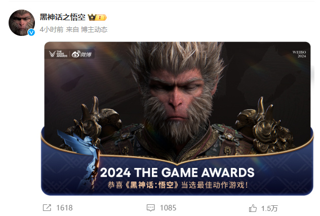 国产3A大作《黑神话:悟空》四获提名,最终得到了最佳动作游戏和玩家之声奖项。可是由于没能得到年度最佳奖项,许多中国玩家还是感到非常遗憾的。