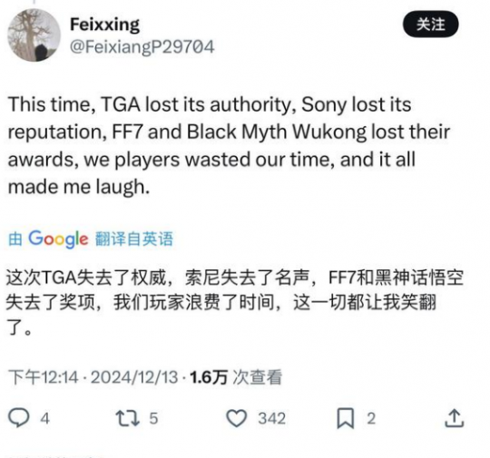 有人认为它的体量不行,完全支撑不起这项殊荣;有人认为本作的知名度和销量太低,仅仅卖出150万份,在玩家之声投票中也没能进入前十;更多人觉得,即便获奖者不是《黑神话:悟空》,那也应该是《最终幻想7:重生》或者《暗喻幻想》。