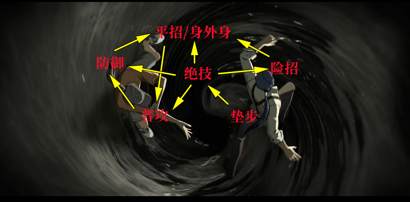 绝技可以克制所有的攻击手段,不过因为有较长的释放动画,所以只有对方被打出硬直或是出招过程中才好命中。当对方使用绝技时,你就只能用垫步进行闪避了。
