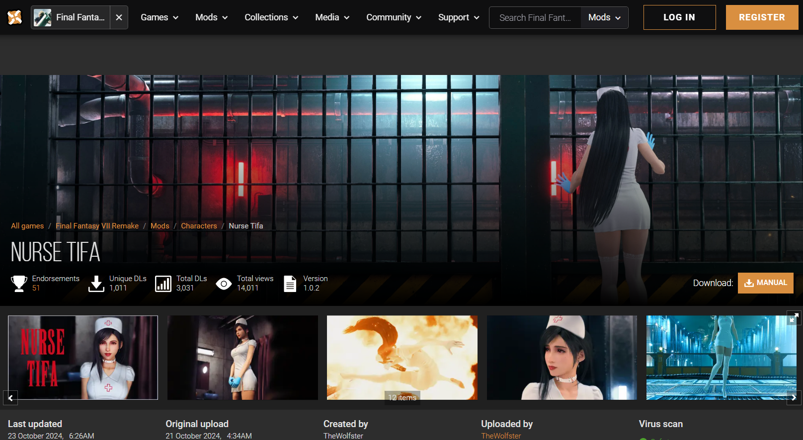 当然,滨口直树所说的冒犯或者不适当的mod作品,具体的界定还是有些模糊不清。譬如说,一位叫FudgeX02的mod作者,就钟情于“肌肉兄贵mod”的开发工作。这里面的蒂法和爱丽丝,就给人以一种“金刚芭比”的感觉,那么这算不算不适当的内容呢?