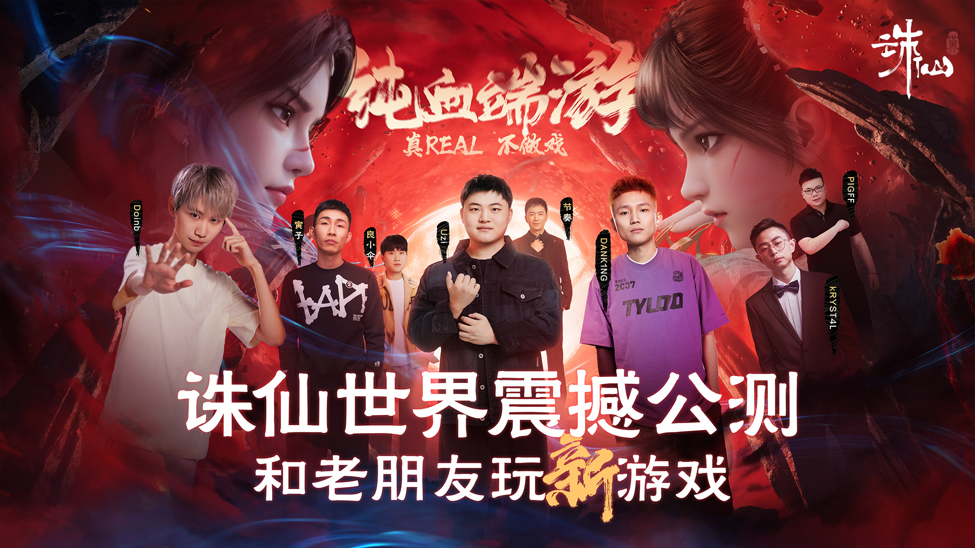 Uzi、Doinb、良小伞、kRYST4L、DANK1NG、节奏、Pigff、寅子化身璇玑体验团入驻《诛仙世界》。今晚20点锁定主播直播间,领取专属限定称号。