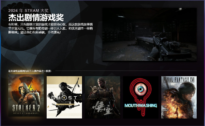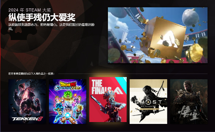 毫无疑问,这一系列奖项中含金量最高的仍是年度最佳游戏奖项。先前在同样由玩家投票决定结果的金摇杆奖,《黑神话:悟空》就已经拿到过一座年度最佳游戏奖了。这一次在关于Steam年度最佳游戏奖项的评选中,本作的机会依然很大。