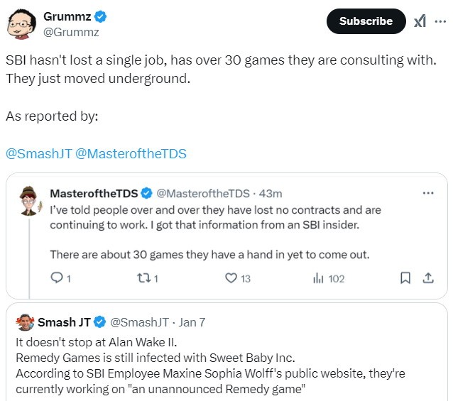 此外游戏博主MasterOfTheTDS透露,Sweet Baby Inc没有裁员,也没有失去任何合同,他们只是转移到地下,且在积极参与大约30款游戏的开发工作。