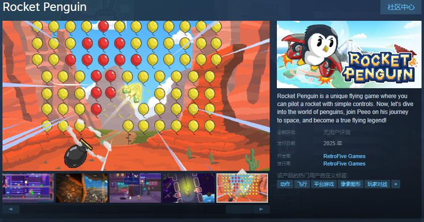 今日(2月18日),2D飞行动作游戏《火箭企鹅》Steam页面开放,2025年发售,支持繁体中文,感兴趣的玩家可以关注一波。