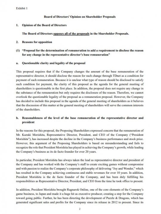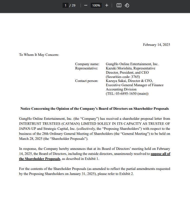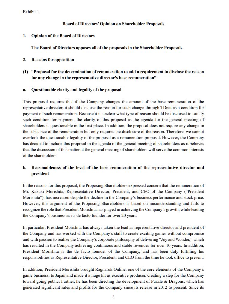 回应指出,股东针对社长Kazuki Morishita提出的论点(其社长的年薪为3.4亿日元,接近任天堂社长的3.6亿日元年薪,且普遍高于日本同行业的同岗位薪酬)“是基于误解的,没有认识到社长在实现公司增长方面所发挥的作用,以及他作为公司事实上的创始人领导公司业务超过20年。”