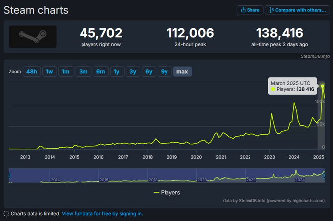 每当一款多人合作独立游戏爆火时,《Spacewar!》的在线玩家数都会迎来飙升。不过,对于这种情况V社并未进行处理。