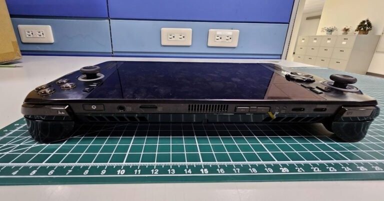 从FCC披露的Wi-Fi模块认证图可见,新款掌机采用类似GameCube手柄的流线型设计,背部握把更为宽大,但屏幕边框仍保持与初代相近的宽度。顶部配备双USB-C接口,侧视图显示机身厚度有所增加。