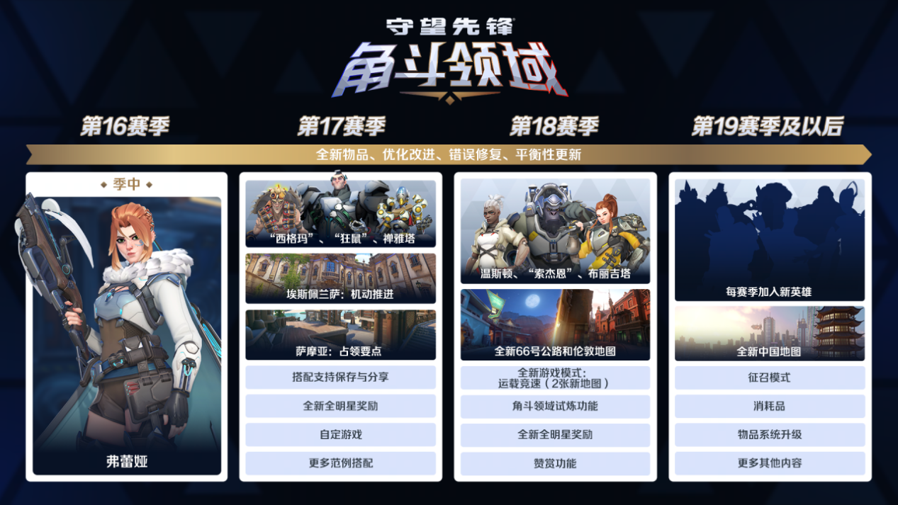 新英雄的加入只是角斗领域未来更新计划中的一个方面,Aaron Keller还透露了更多有趣的新内容。比如,在第17赛季,导入和导出搭配的功能将正式上线。而在第18赛季,角斗领域中还将推出一个名叫“运载竞速”的全新游戏模式,并随之发布两张全新地图。在后续的赛季更新中,角斗领域还会不断加入新英雄、新地图,推出全新全明星奖励。
