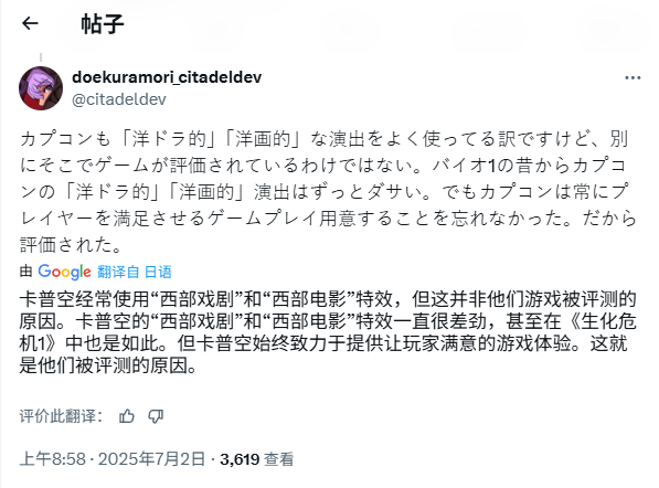 Doekuramori在贴文中指出,过去许多日本开发商试图模仿《使命召唤》等西方主流射击游戏,反而导致项目失败。他认为,这些厂商忽视了自身在玩法设计方面的优势,转而投入精力去模仿他们并不擅长的“西式军事题材”和叙事风格。