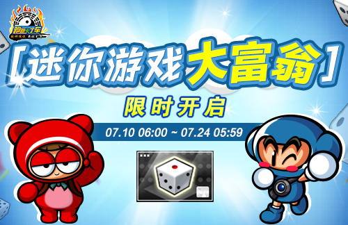 本次更新后,在7月10日06:00至7月24日05:59期间,[跑跑大富翁迷你游戏]限时开放!车手们可于7月11日00:00至7月13日23:59完成<累计在线活动>,或是7月10日06:00至7月17日05:59每日完成1次<投掷大富翁骰子>来获得“骰子兑换券”~