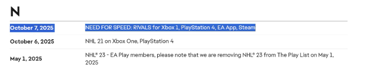 EA在其官网上已将《极品飞车18:宿敌》列入即将下架的游戏名单,平台包括Xbox One,PS4,EA App和Steam。该游戏的在线服务器将于2025年10月7日关闭。《极品飞车18:宿敌》外,《NHL21》(Xbox One|PS4)将于10月6日下架。