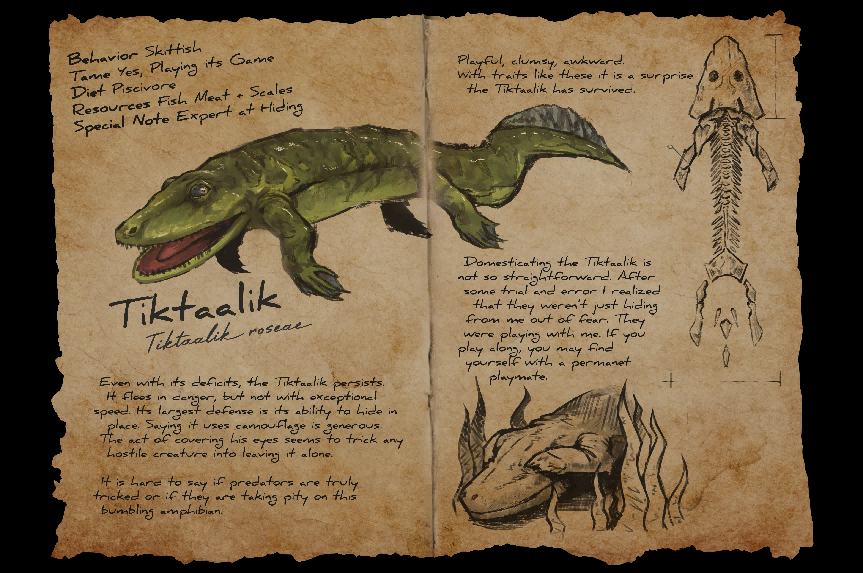 "尽管有诸多弱点,提塔利克鱼还是顽强地生存了下来。它在遇到危险时会逃跑,但跑得不快。它最大的防御手段是“原地隐藏”。说它会伪装其实有点夸张——它只需遮住自己的眼睛,就似乎能骗过任何敌对生物。"