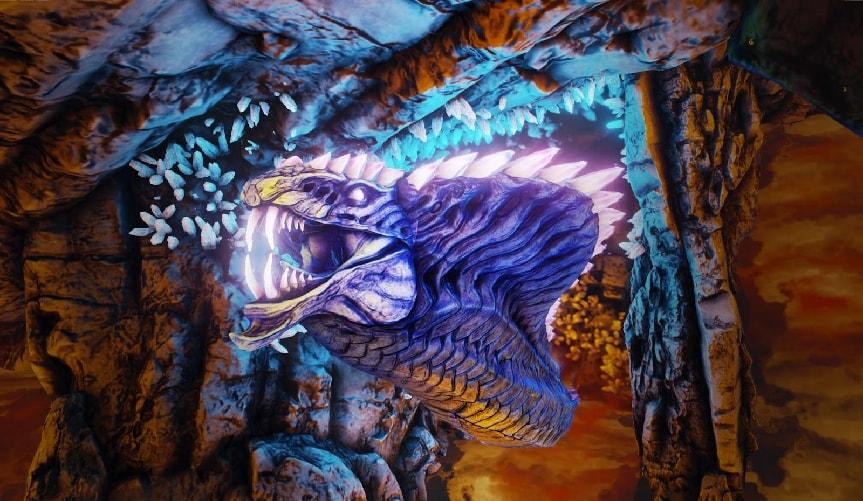 这条蛇形巨兽在熔岩池边沉眠了无数纪元,缓缓吸收周围的炽热能量。它散发出极端高温,仿佛天生适应了“沸腾之海”中那令人窒息的深压——那片神秘区域,竟能让熔岩始终保持液态,不曾凝固。