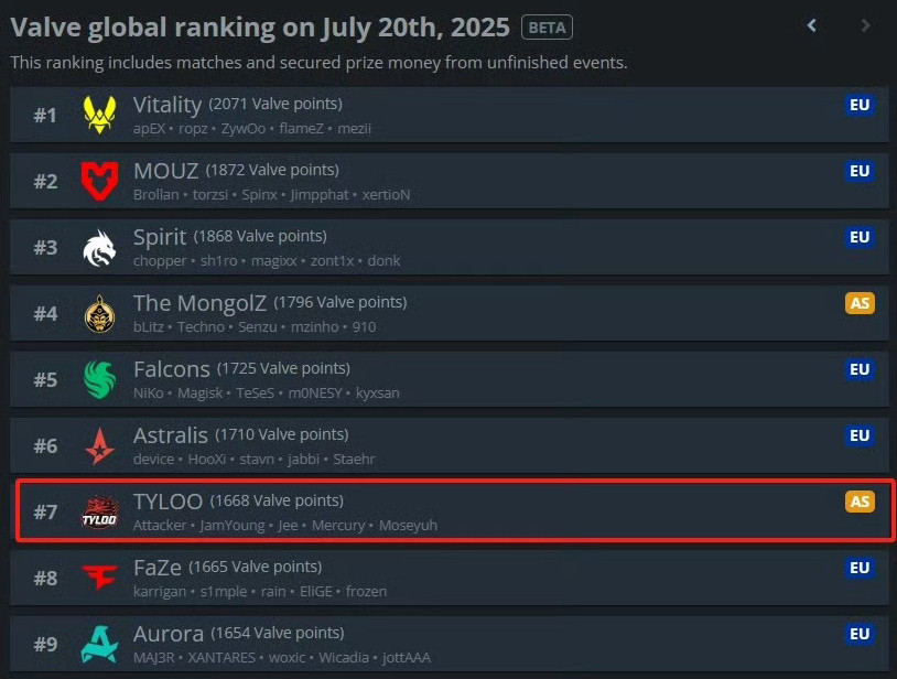 夺冠后,天禄战队的世界排名跃升第七,打破了自2018年以来的低谷期,创造中国CS(CNCS)新历史