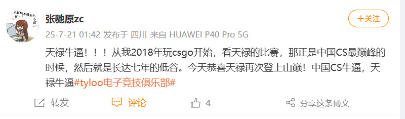 此次夺冠终结了CS游戏中国战队长达7年的国际大赛冠军荒,粉丝称为“重现2018年荣光”。
