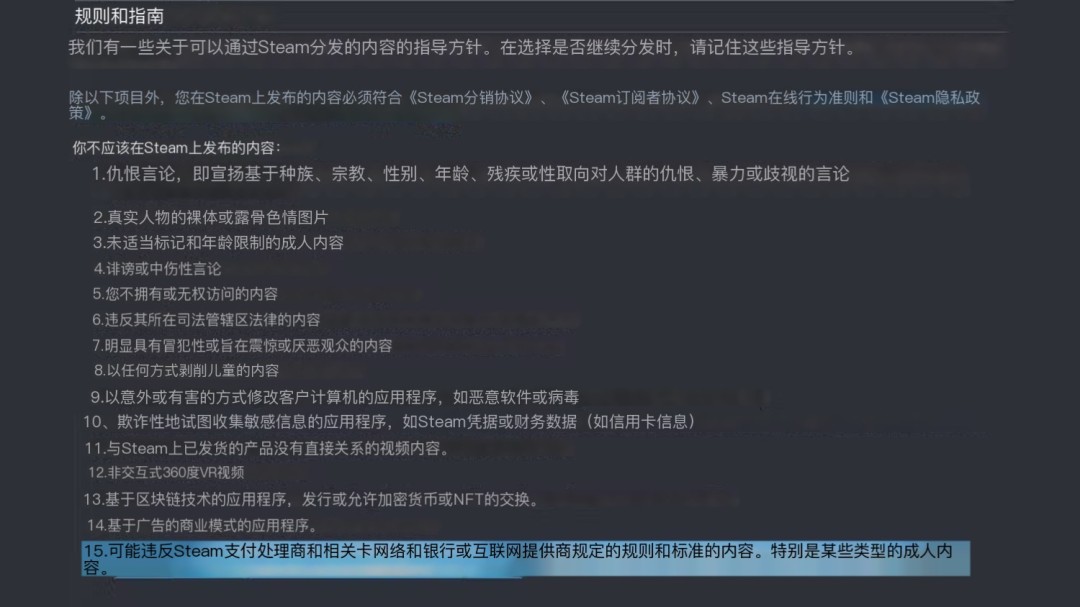 根据Steam新规,游戏发行商需确保作品不违反支付处理商的条款。这意味着创作者不仅要遵守平台规则,还需接受万事达卡、Visa和PayPal等公司的潜在审查。