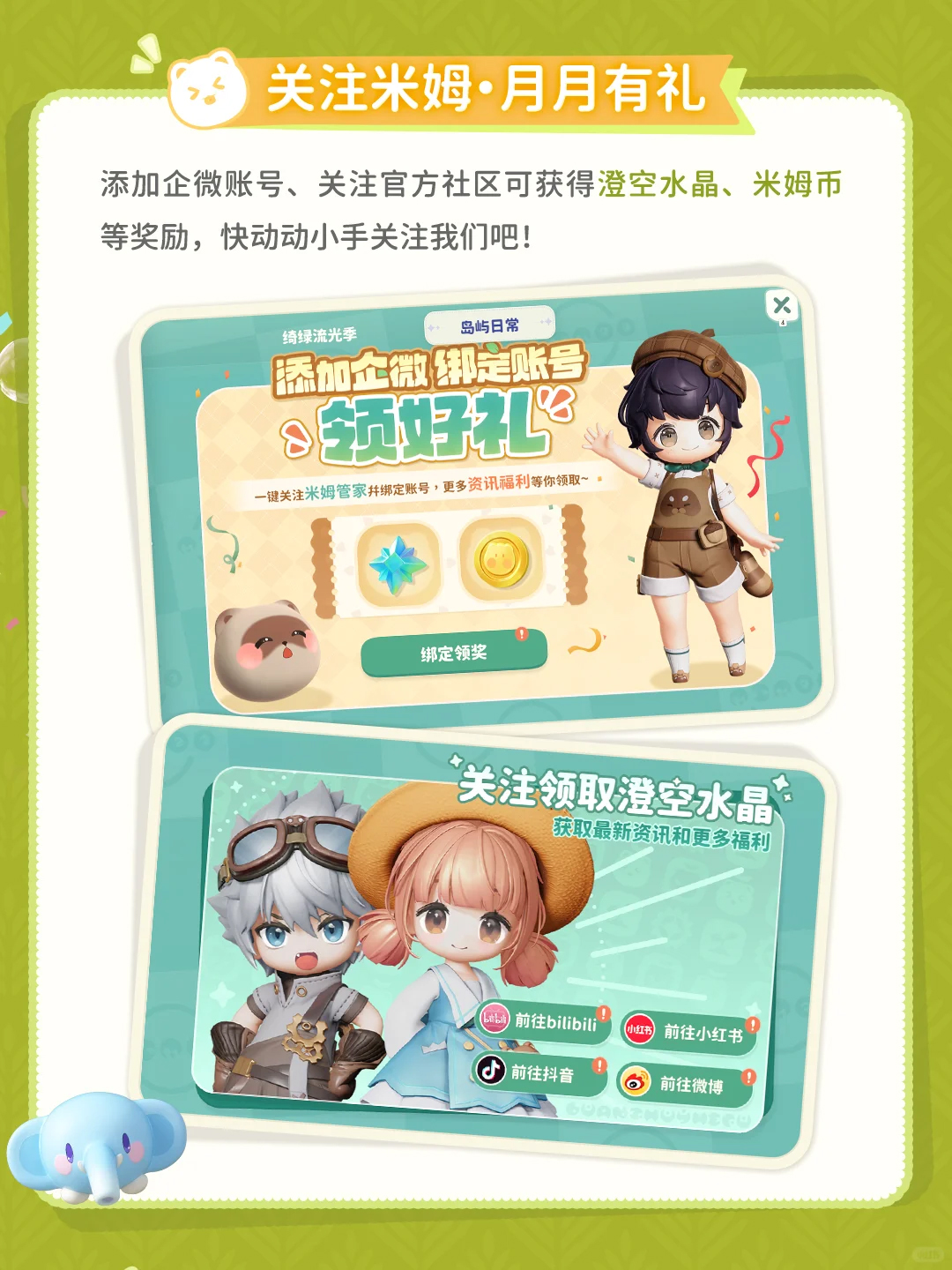 ¡¡¡¡±ðÍüÁË£¡ÔÚÓÎÏ·ÄÚµÄ»î¶¯Ò³ÃæÌí¼Ó°ó¶¨Æó΢Õ˺ÅÒÔ¼°¹Ø×¢¹Ù·½ÉçÇøÕ˺ݹ¿ÉÒÔ»ñµÃ³Î¿ÕË®¾§¡¢Ã×Ä·±ÒµÈµÈ½±Àø¡£